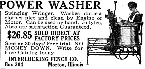an early version of a clothes washing machine (1918 Power Washer advertisement)