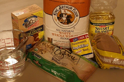 ingredients for whole wheat walnut bread
